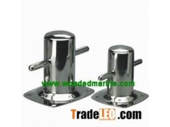 WMI Mooring Bollards made of Stainless Steel 316. It is single cylindrical bollard, fixed to the pontoon by 4 pieces. Its cross rod allows mooring line bends.