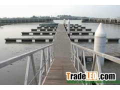 WMI Aluminum pontoons are made of marine grade aluminum alloy 6005 T6 or 6082 T6 and electro welded with TIG-MIG process. The decking is made of precious exotic hard wood, fixed with stainless steel bolts and screws. The floats are FRP floating or HDPE floating filled with eps, which are bolted through stainless sleeves to the underside of the pontoon frame. The two sides laterals are removable aluminum covers. The two edges lateral fenders are made of anti-aging rubber materials.
